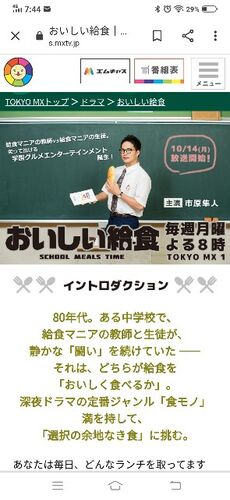 バンコクにいながら、日本よりも快適なテレビ生活を送ってしまっています… ドラマ漬けーー 刺繍しながらドラマ観る時間は至福です。 今回も色々見てるけど、ちょっとハマってしまったのが 「おいしい給食」 うちのテレビでは TOKYO MXで月曜日夜20時放送(日…